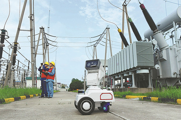 An intelligent robot helps technicians inspect power supply facilities in Chuzhou, Anhui province, in June. SONG WEIXING/FOR CHINA DAILY