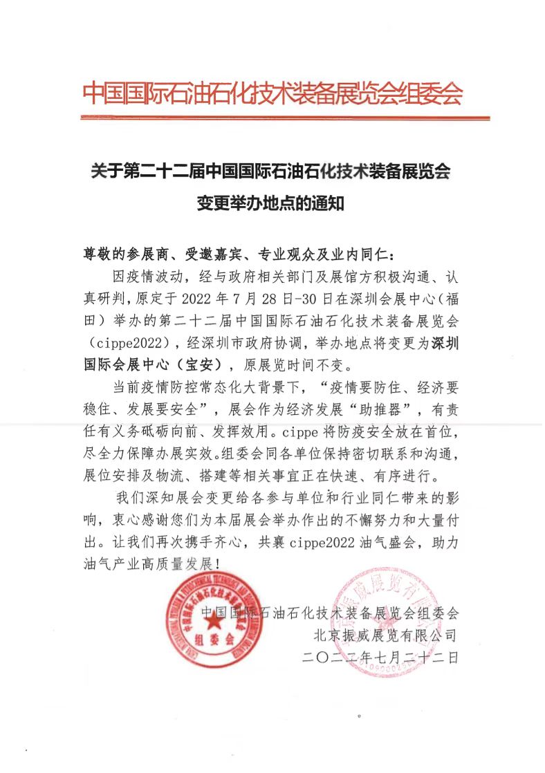 2022-07-182022年7月28日-30日,一年一度的世界石油天然氣大會——第二十二屆中國國際石油石化技術(shù)裝備展覽會(cippe2022振威國際石油展)將在深圳會展中心(福田)舉辦。國興匯金(深圳)科技有限公司將精彩亮相展會,展位號:E1310。歡迎您屆時蒞臨企業(yè)展臺參觀交流。國興匯金國興匯金(深圳)科技有限.........【詳情】