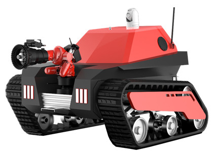 中型油動(dòng)力消防滅火機(jī)器人采用履帶式懸掛減震機(jī)構(gòu),由機(jī)器人本體、消防水炮、紅外云臺(tái)及控制終端等模塊構(gòu)成。同小型消防滅火機(jī) 器人相比,中型油動(dòng)力消防滅火機(jī)器人的行駛性能、拖拽水帶、滅火能力等更加強(qiáng)大,負(fù)載更大,續(xù)航時(shí)間更長(zhǎng)。中型油動(dòng)力消防滅火 機(jī)器人適用于石油化工、地下管廊、隧道、大跨度/大空間場(chǎng)所等人員不易接近的危 險(xiǎn)火災(zāi)現(xiàn)場(chǎng)進(jìn)行滅火、冷卻、化學(xué)洗消等作業(yè)。