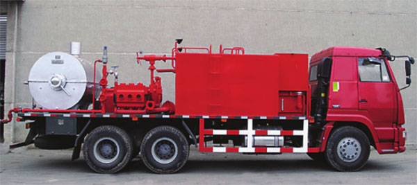 本產(chǎn)品是將混砂、泵送一體化集成在撬裝設(shè)備上, 用來執(zhí)行低砂比攜砂液的小排量、高壓力泵送,作為連續(xù)油管特種作業(yè)的配套裝備。主要設(shè)備主要由發(fā)動(dòng)機(jī)、發(fā)電機(jī)、分動(dòng)箱、壓裂泵、螺旋輸砂器、混合罐、吸入排出管匯、高壓管匯、安全系統(tǒng)、燃油系統(tǒng)、壓裂泵潤滑系統(tǒng)、路系統(tǒng)、氣路系統(tǒng)、液壓系統(tǒng)、 儀表及控制系統(tǒng)等組成。