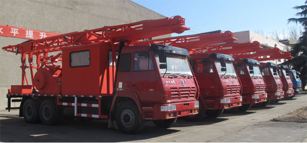 該車具有作業(yè)速度快,提升噸位大,傳動(dòng)系數(shù)配比合理、使用壽命長,井架安全系數(shù)高、安全可靠,控制可靠等特點(diǎn),是油田有力的增產(chǎn)設(shè)備之一。
